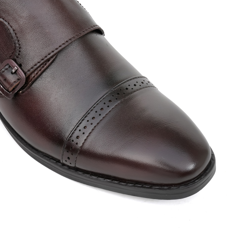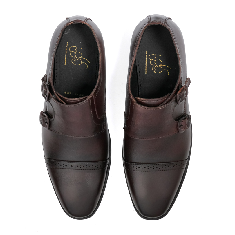 The Brown Double Strap Monk Moccasin Shoes feature a sleek, laceless design with stylish double straps. Available in sizes 6 to 10, they offer comfort and sophistication.