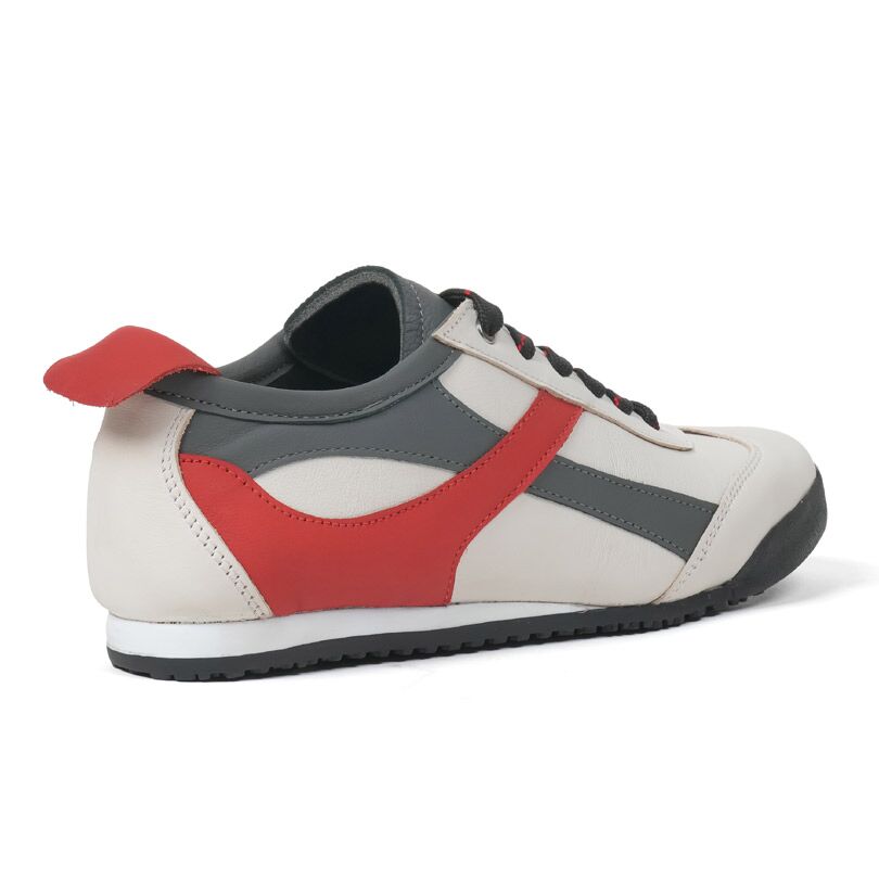 The Fusion Grey/Red/Off-White shoes combine a sleek design with vibrant accents. Offering comfort, durability, and style, they’re perfect for both casual and athletic wear.